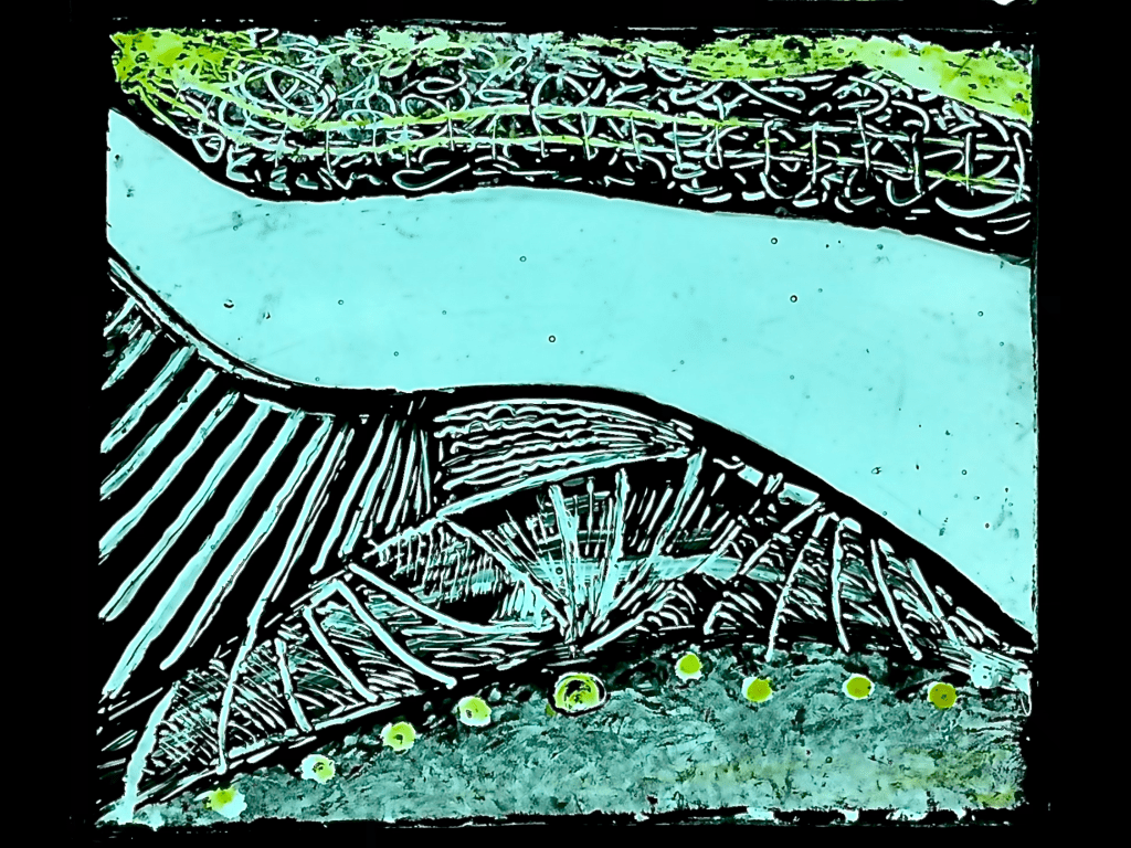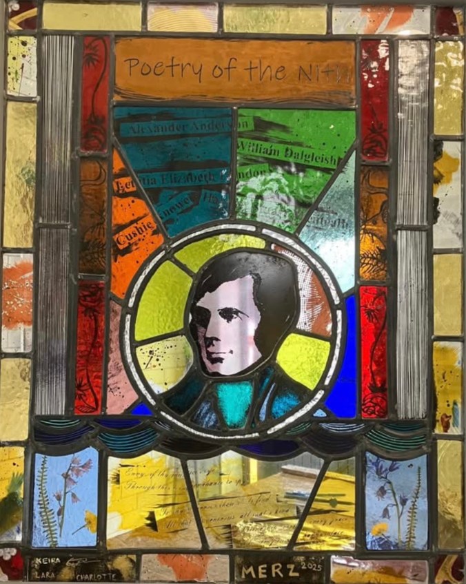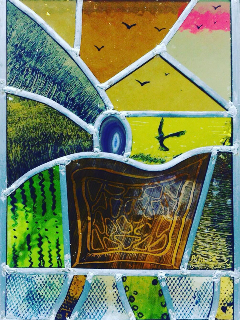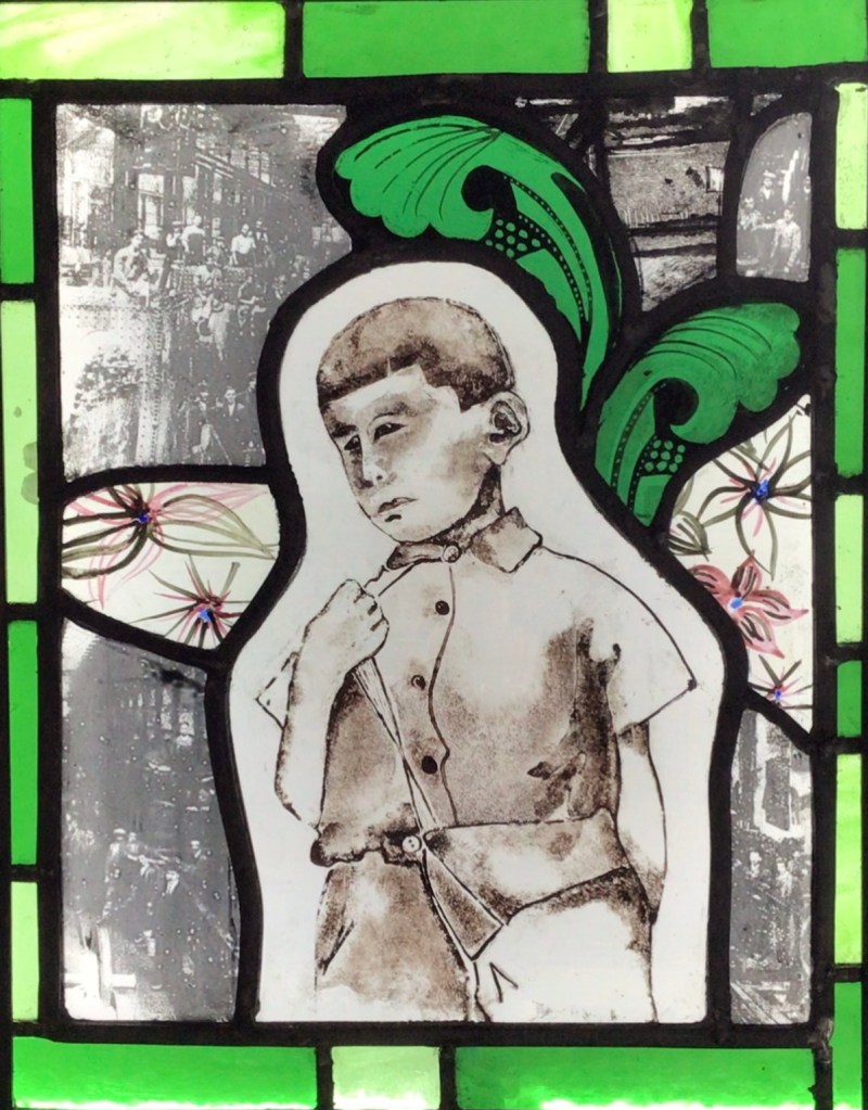 Painted and screen printed stained glass panel