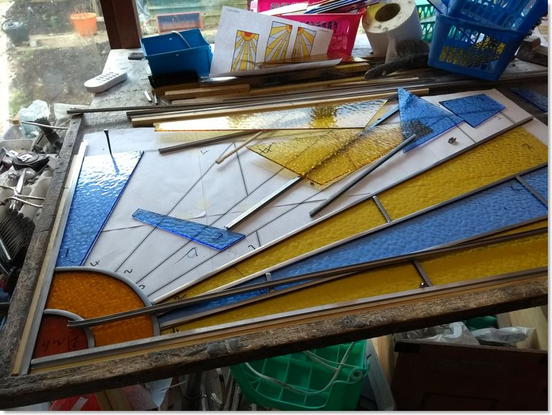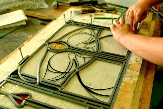 We will begin with creating your bespoke design. Then you will select the glass choosing in relation to the textures and colour palette you have in mind. We will begin cutting and grinding the shapes to fit to your ‘cartoon’ template and then once closely aligned we will begin the process of leading with came. When completed we will putty and polish the came until the piece is solid and ready to hang.